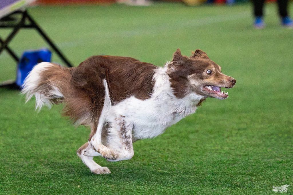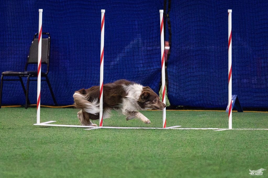 Style is our spunky little red tri ticked female out of our Frenzy and Halla 2021 litter. This girl is a real firecracker! If you ever see her out at agility trials, there’s no mistaking how much she loves this sport! She’s so dang fast that keeping up with her poses some real challenges. She’s got a bright future and we are very much looking forward to seeing how far she can go in her agility career. We are also looking forward to seeing the pups she produces.